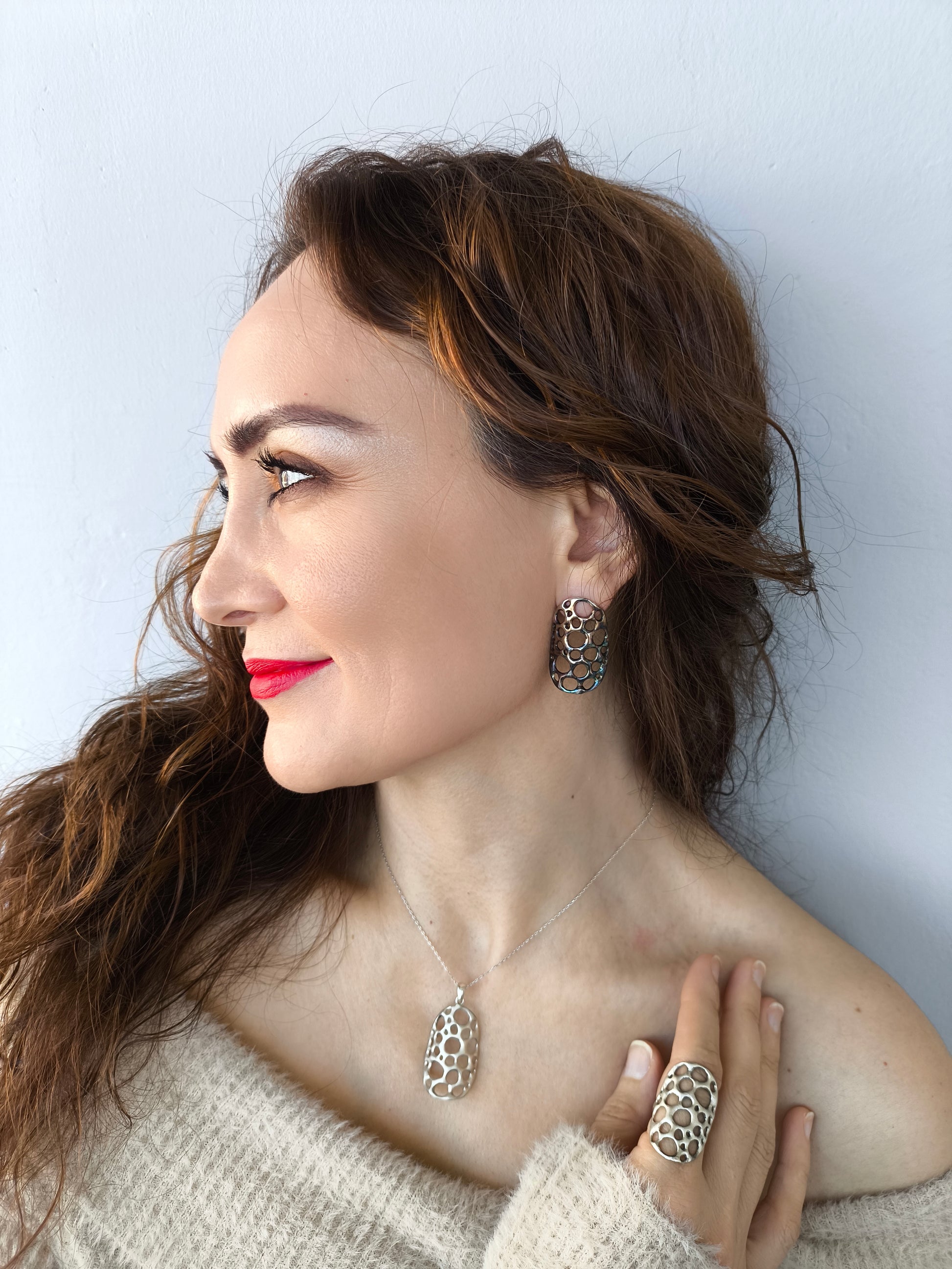 Tüm çalışmalarımı geleneksel mum modelleme, gümüş metal işçiliği, metal kili gibi farklı teknikler kullanarak üretmekteyim.